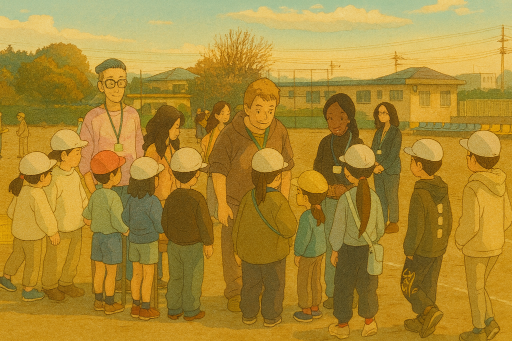 町内に勤務するALTが全員集合し、1日を通して児童と一緒に様々な活動をします。