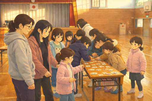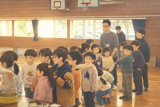 小学校の体育館でCandy Shopを開催しました。たくさんの児童の皆さんが参加してくださいました。カードに書かれた英語が何を表しているのか、ALTと一緒に挑戦しました。"Mission complete!"とたくさんの笑顔が見られました。