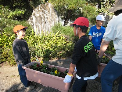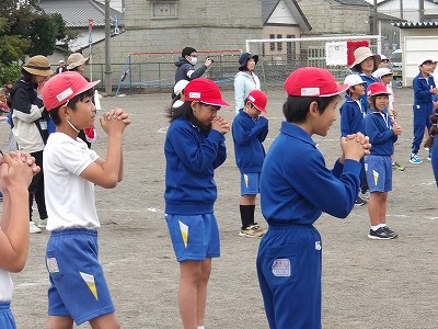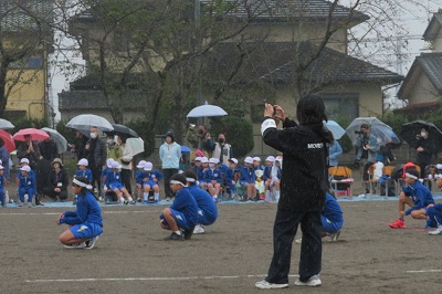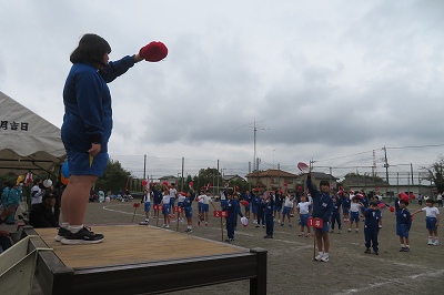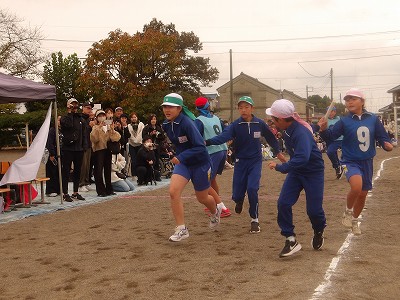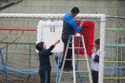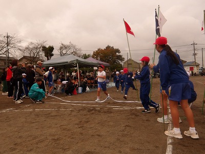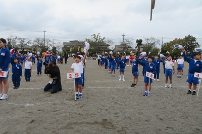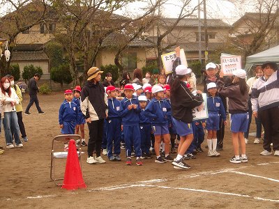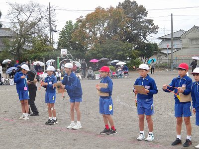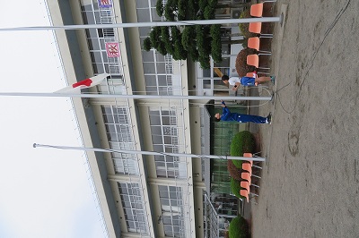 5年生の運営広報委員がロープを、4、5年生が、○と×の表示を持ちました。