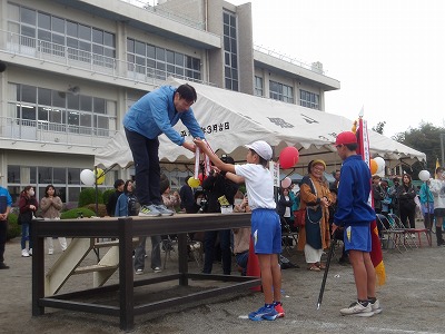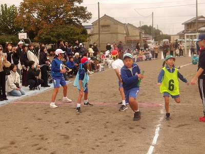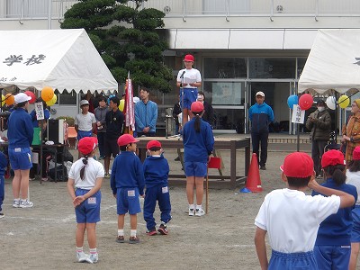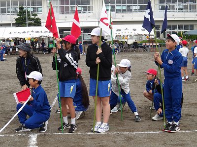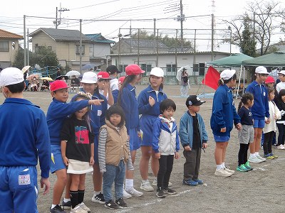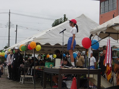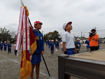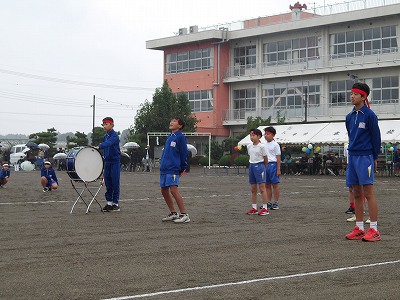 2年生のお囃子係の子供たちが、お囃子を演奏して会場の皆さんを校庭に招き入れてくれました。