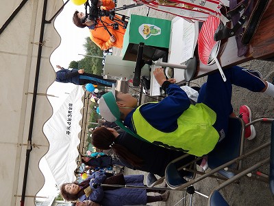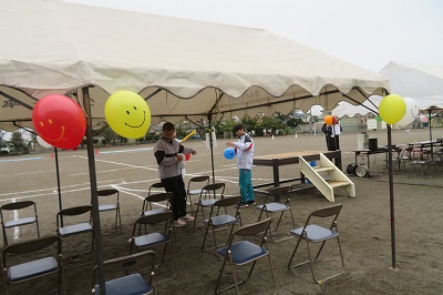 中学生ボランティアが、シャボン玉で盛り上げます。