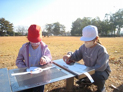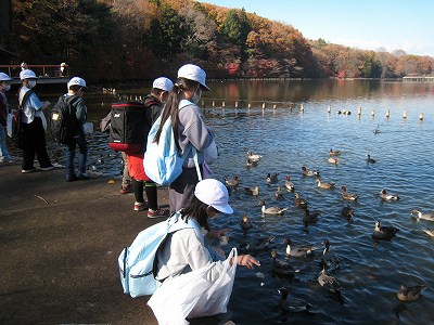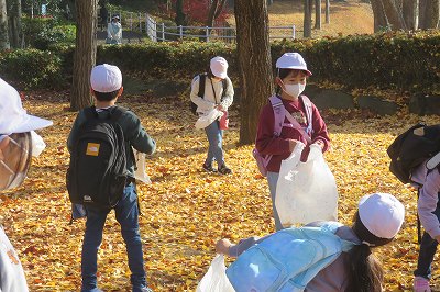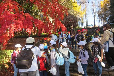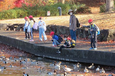 1年生と2年生が、生活科の学習で秋を探しに井頭公園に行きました。