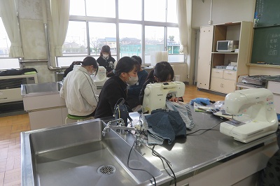 安全にミシンが使えるように、先生の話をよく聞きました。
