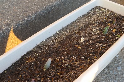 1年生が11月に植えたチーリップの球根が、芽を出しています。