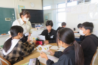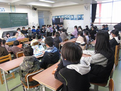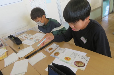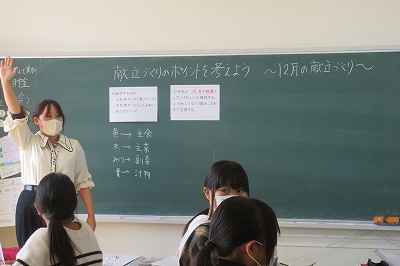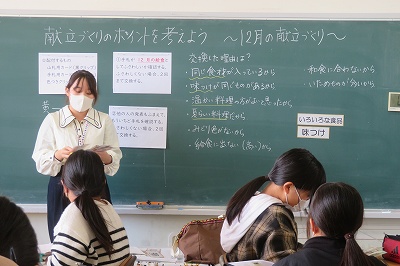 6年生が、調理実習の前に献立作りのポイントを給食センターの先生に教えていただきました。