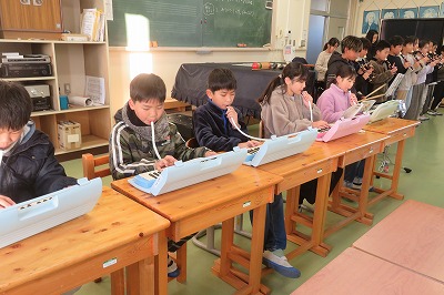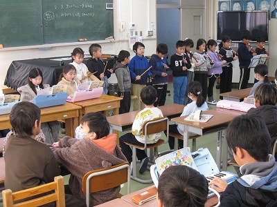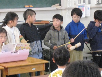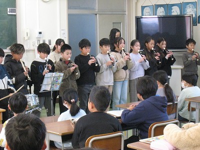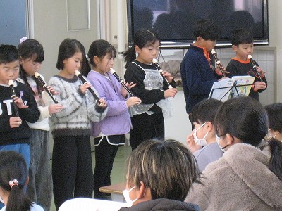 3年生と4年生が、音楽の時間に習った合奏の発表会をしました。