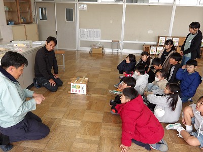 1年生から、来年の1年生へのプレゼントが渡されました。