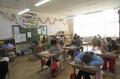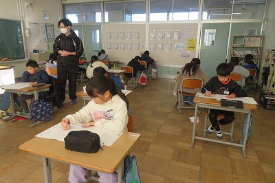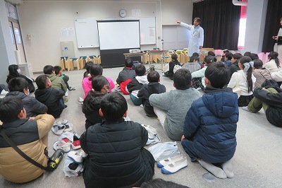 学校歯科医の先生が、3年生に丈夫な歯を作るための話をしてくれました。