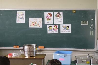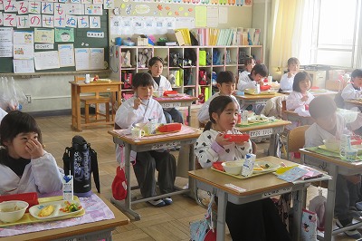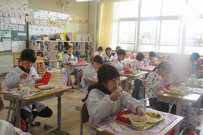 今年度最後に、給食センターの先生と旧力を食べたのは、1年生でした。