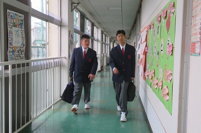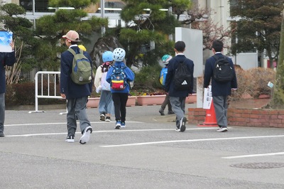 中学校の制服を着た6年生が登校してきました。