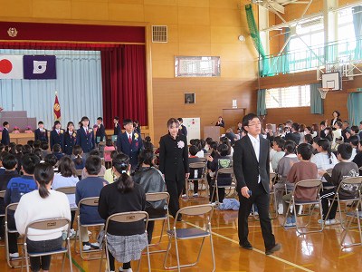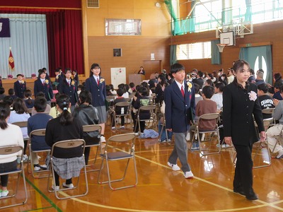 また、卒業生から家族や地域の皆さん、先生方に感謝の言葉、在校生への言葉がありました。