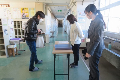 事前に、各クラスで合い言葉を考えてもらっていたので、それをホワイトボードに貼り、発表しました。