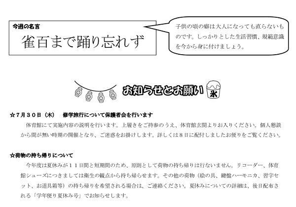 1年生のページ