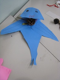 図工の時間に、画用紙を切り貼りし、パクパクさんを作りました。