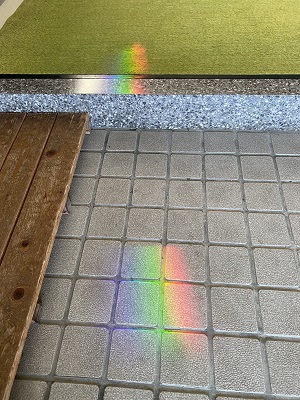 晴れた日の夕方、来賓(らいひん)玄関の床に虹(にじ)ができていました。