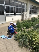 先日、理科の授業で『春の生き物』の学習をしました。冬から春にかけて生き物の様子がどのように変わってきたのかを、植物を1種類決めて、タブレットで撮影し観察をしました。