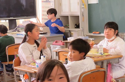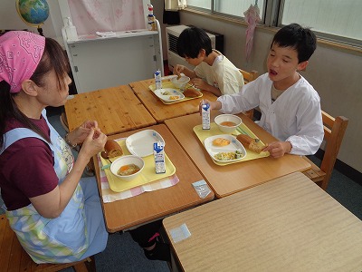 おしゃべりしながら給食を食べると、自然に心も開きます。