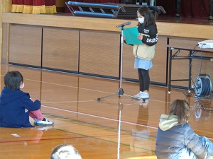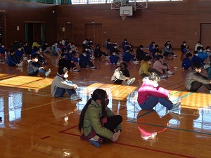 明日から冬休みです。今日は、体育館で冬季休業前集会を行いました。