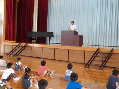校長先生からは「自分の命を大事にすること」「夏休みにしかできないことに挑戦すること」について、お話をしていただきました。