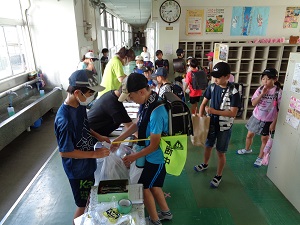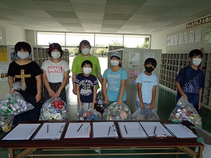 環境整備委員会の児童が中心となって、朝昇降口で集めました。