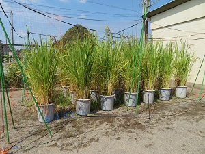 気温の高い日が続いていますが、子供たちは元気いっぱいです。5年生の「バケツ稲」も、逞しく成長しました。