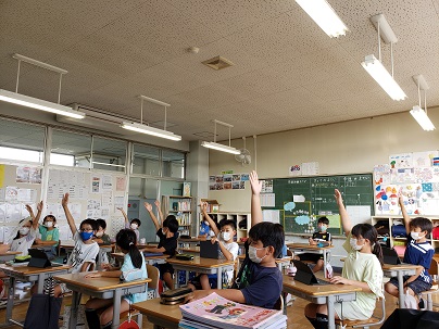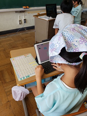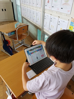 ①遠足実行委員が活動を始めました。3・4年生の遠足では、子供たちの成長の場を設けるため、遠足実行委員を募集しました。今回の遠足実行委員の仕事内容は式を進行するチームとしおりの一部を作成するチームです。写真はロイロノートを使って、しおりを作成しているところです。