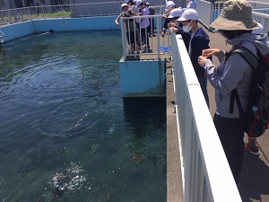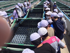 栽培漁業センターでは、ヒラメやアワビの栽培漁業についての説明を聞きました。