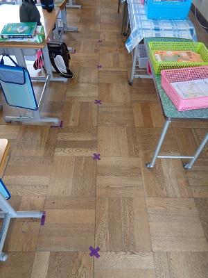 教室で提出するプリントを待つ時や漢字小テストを丸付けを待つ時など、密集しないために待つ時の印(しるし)を作りました!