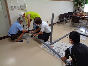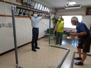 地域の方のご協力で、塩ビ管を使ってのミニサッカーゴールが出来上がりました。