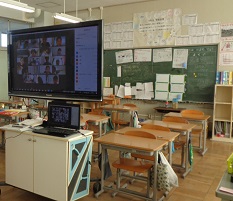 オンライン朝の会では、子供たちはお互いの顔を見て、「おはよう!」と笑顔であいさつをしていました。友達の顔を見ることができて、とてもうれしそうな様子でした。