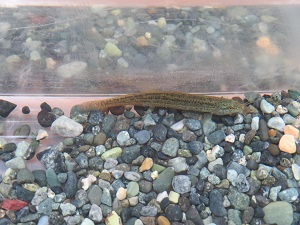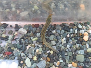 すると、昨夜の大雨で近くの用水路が増水、逃げてきたのでしょうか。どじょうが1匹、「うけ」に入っていました。校庭で捕獲したことに、子供たちは驚いていました。名前は「どじょう丸」とのこと。