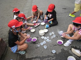 生活科の時間に、夏ならではの遊びを楽しみました。