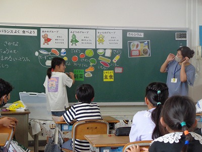 4年生も、ある日の給食のメニューを例に考えていきました。