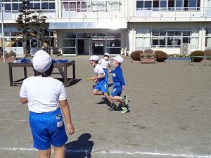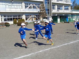 体育ではリレーを行っています。