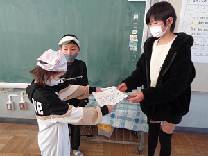 昼休みに運動委員さんが縄跳び大会の賞状を持って来てくれました。