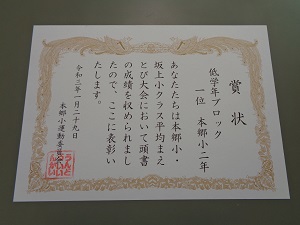 低学年ブロック1位の賞状ももらいました!