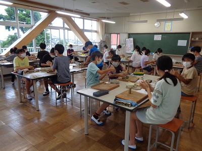 図工「なぞの入り口から」で、粘土を使った制作を行ないました。