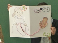 いのちの始まりについてや、おへその話、お腹の中での赤ちゃんの成長、赤ちゃん人形の抱っこ体験などを行いました。