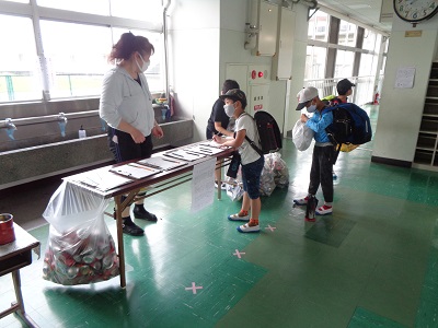 7月31日のアルミ缶回収では、6年生のみなさんをはじめ、たくさんの児童が協力してくれました。ありがとうございました。次回は8月28日(金)です。