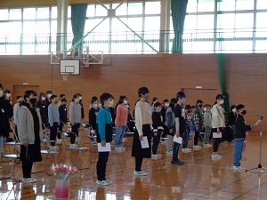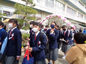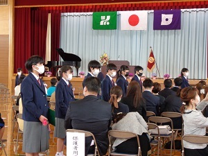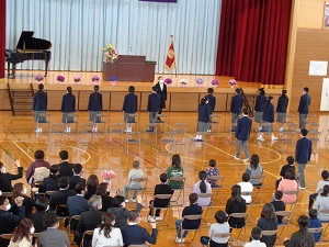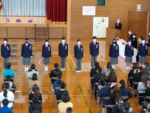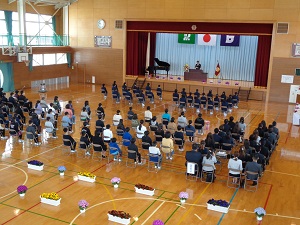令和2年度卒業証書授与式が行われました。式には4年生と5年生の児童が参加し、門出には全校児童が参加して、卒業生をお祝いしました。卒業生の皆さんの今後の活躍を、心から期待しています。