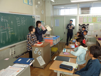 2月21日、5年生が町社会福祉協議会の協力により福祉学習を行いました。視覚障害を持つ方から講話をいただきました。