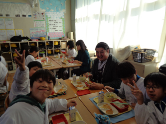 1月30日、3年生と6年生が、給食の食材を生産する方と会食を行いました。
