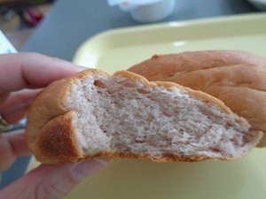 今日の給食のメニューには「いちご米粉パン」が出ました。