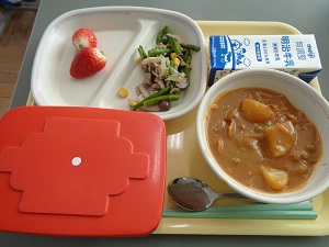 JAからいちご贈呈事業があり、今日の給食にはいちごが出ました。