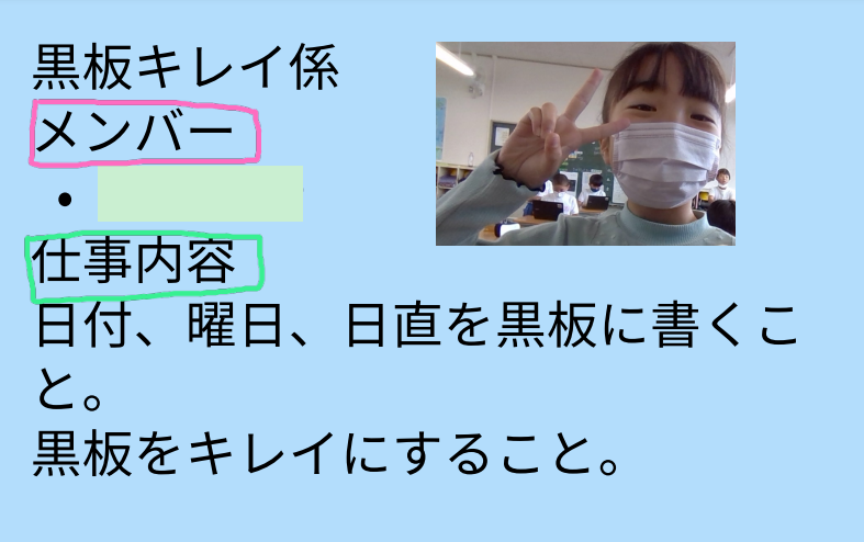 今回は黒板キレイ係を紹介します。
