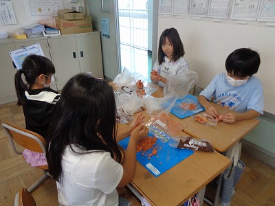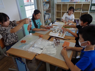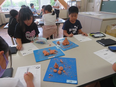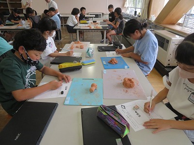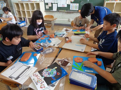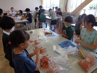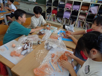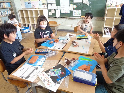 4年生が、図工の時間に粘土を使って思い思いの形を作りました。