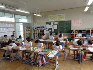 みんな真剣です。2時間の授業の中で7、8枚のカードを書いた子もいました!