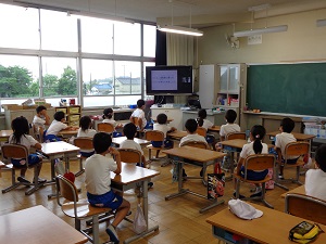 1日の朝会では校長先生から交通安全についてのお話を聞きました。