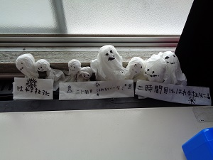 2時間目の体育のプールができるようにとてるてる坊主を作っていました。