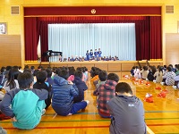 今年の祖父母授業参観では、業間に1年生・6年生の音楽集会を開催しました。